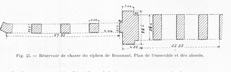 Drawing of the headertank of the Yzeron siphon at the Plat de l'Air near Chaponost (montauzan1908)