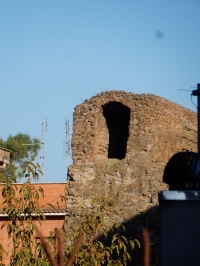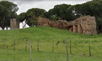 Just before the GRA East of Via di Torrenova remains of the Alexandrina can be reached on a dirt road located about 200 m south of the intersection of Via Prenestina and Via di Torrenova. This road leads up to an abandoned farmstead and a gravel pit. The best route to these ruins, which are located just below the abandoned farmhouse, in the direction of Via Prenestina, is to leave the dirt road just before the abandoned farmstead and walk down the field to the left onto the valley floor downstream of the arches, which can then be approached from below. There are some substructions on the east bank of the stream that can be more easily reached by following the dirt road around the house and down past the gravel pit (taking the left fork in the road; the other leads south to a working farmstead). The original arcade here was 28 arches long, of which nine remain, five on the upper bank and four on the lower, separated by a gap of two fallen arches. From: P.J. Archer (1995): Guide to the aqueducts of Ancient Rome, pag. 111 |