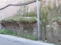 The Sette Sale (Seven Halls) cisternThe water supply of Trajan's Baths was stored in a huge cistern - known since the Middle Ages as Sette Sale, the Seven Halls - that was fed by a branch aqueduct that came from the Esquiline hill. Located at the edge of the park, the cistern is well preserved (entrance on the Via delle Terme di Traiano). Since it is oriented differently than the Baths, it was once thought to have belonged to the Domus Aurea. However, the many brick stamps found in its wall prove that the cistern was built at the same time as the Baths.The cistern is on two levels, each consisting of nine parallel compartments more that 5 meter wide and 30 to 40 meters long (their length differ because of the curve of the eastern perimeter wall). The lower level stands directly on the ground supporting and elevating the upper level - the reservoir proper - which was therefore high enough to ensure that the water could flow out with enough pressure to supply the Baths. The cistern was partially embedded in the ground, so that the back curved wall and the two side walls are partially covered and buttressed by the embankment, while the straight front wall with alternating rectangular and semicircular niches was in sight. Later alterations made when the cistern was no longer in use, isolated the terrace and eliminated the connecting elements that adjusted for the difference in height between the front and back of the cistern. Large windows opened in the niches of the upper level provided ventilation. The water flowed out of pipes set in the low-level niches into a large conduit a stretch of which has been found in front of the northeastern exedra of the Baths. The compartments could hold over eight million liters of water. Their walls and floors are faced with waterproof plaster; they are interconnected by a system of staggered openings that prevent the formation of water currents or stagnation. The cistern has always been visible over the centuries. In the Middle Ages, one of its compartments was used as a burial area: more than a thousand skeletons were discovered here during the 1967 excavations. Text of the information panel in front of the cistern (May, 2010) |