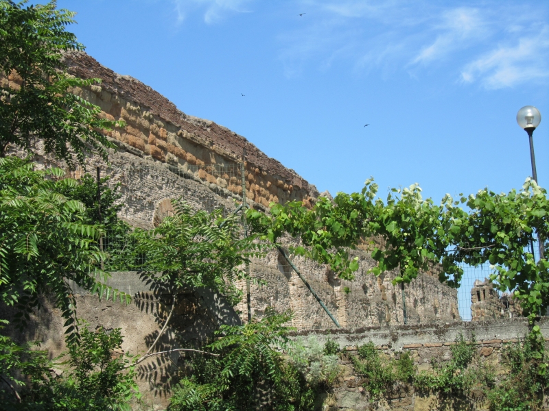 View from the Salita del Mandrione looking downstream towards the city. Note the extra support inside the channel of the Aqua Claudia (bottom right).