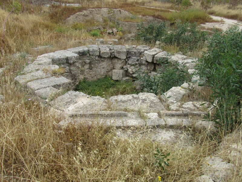 Remains - including a stone cut channel - of a structure sometimes described as a water clock.