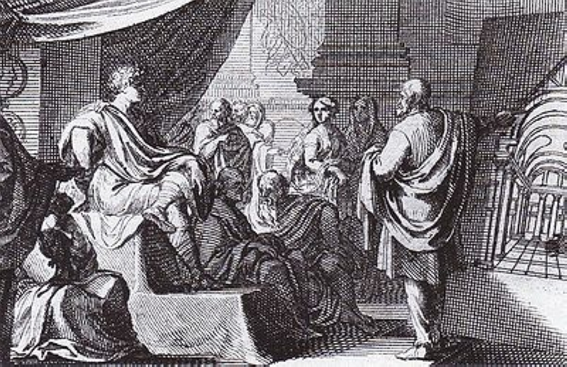 | Leonardi da Vinci's sketch of the Vitruvius man with the ideal proportions of the human body according to chapter XX of Vitruvius' book De Archetuctura | The obverse / reverse side of the Vitruvius man on the Italian Euro coin | Vitruvius presenting his scrolls to ceasar Augustus, 17th c etching |