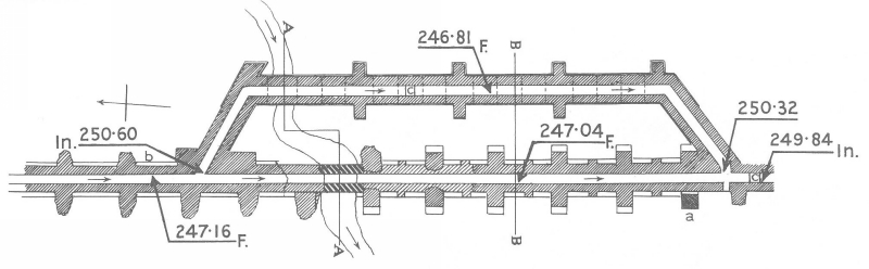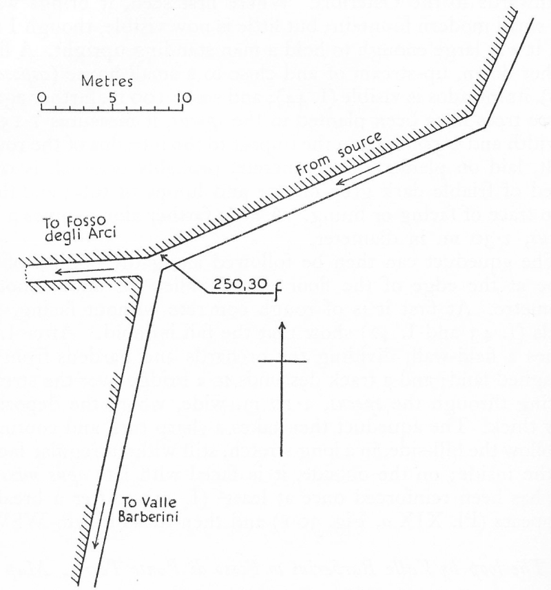 Splitting in the Aqua Claudia near Osteriola without any basin or other control mechanism ?? Ashby pag 268 |