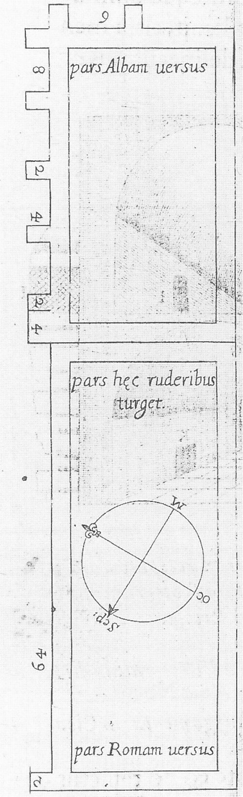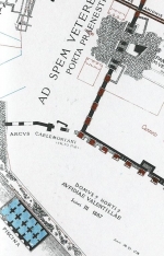 Settling basin, Fabretti's double basin near Villa Bertone who thought erroneously that this structure were the combined settling basins of the Aqua Claudia and the Anio Novus. Fabretti/Evans 2002 pag 152 |