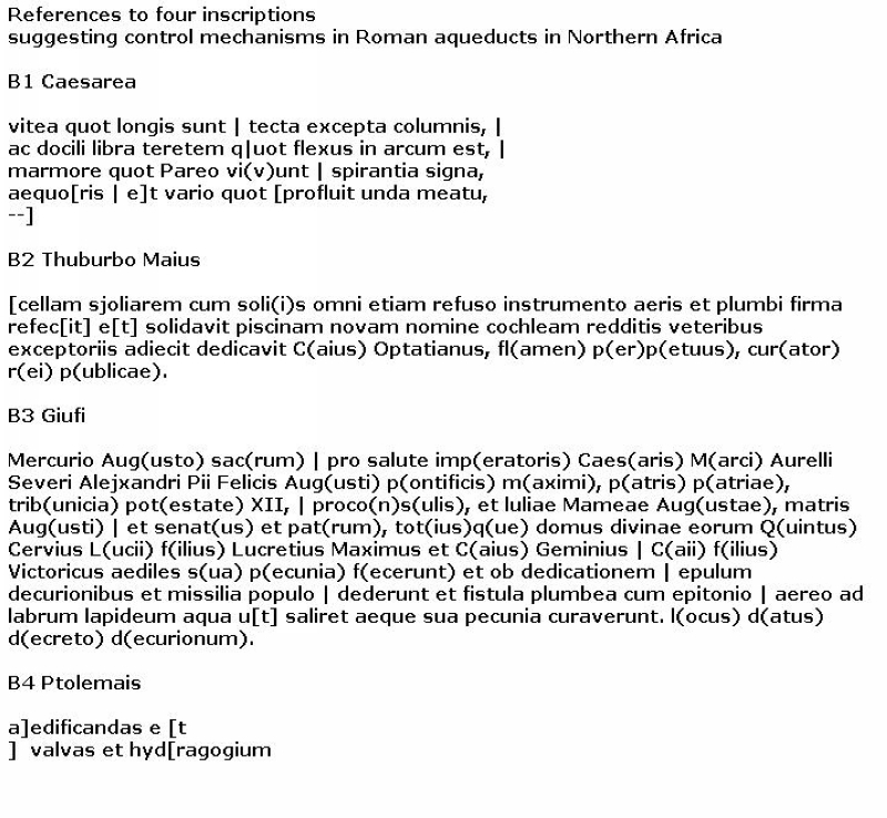 CIL 14.3676 / CIL 8.448 Regulations for use of (aqueduct) water in the area of Tibur, setting sizes of channels and lenth of time for acces |