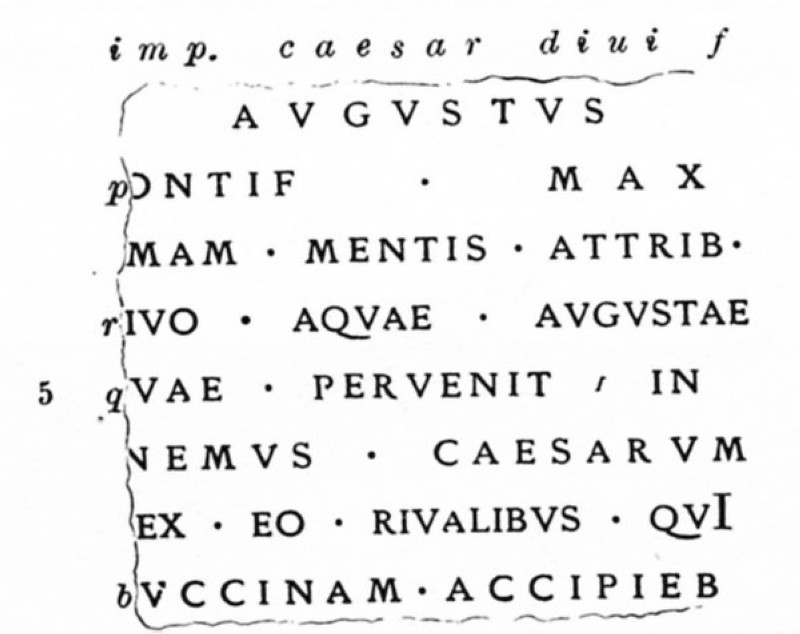 CIL 6.1261 Plan plus related text depicting an aqueduct, branches and on certain places interruptions which seem to represent sluice gates |